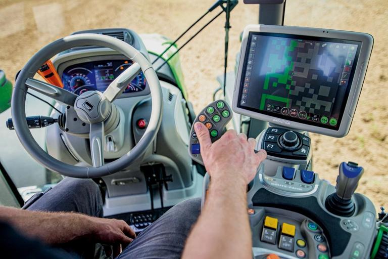 The intelligent front axle suspension system provides three settings (auto, normal and soft), and the tractor comes with air-sprung cab suspension and automatic air conditioning.