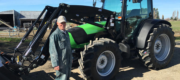 Dean bought a Deutz-Fahr Agrofarm 100 with a front-end loader in August for his Tai Tapu property, where he milks and breeds 350 pedigree Holstein cows and 10 pedigree Jersey cows.