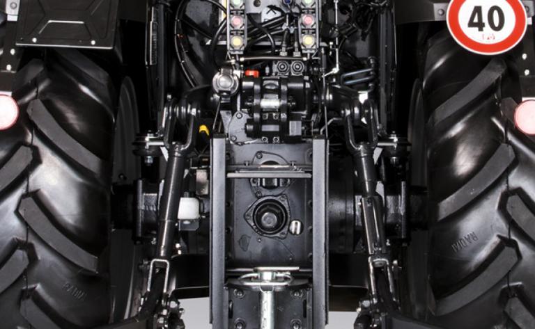 The new DEUTZ-FAHR front axle concept is unique for specialist tractors, making it a real highlight. Independent wheel suspension with a double-wishbone design allows each front wheel to move vertically to a different extent. This results in maximum suspension in all operating scenarios. The spring stroke of each wheel is controlled by an adaptive electro-hydraulic system, ensuring that the wheel contact patch always touches the ground fully. The differential traction control (DTC) system constantly monitors wheel revolutions and always applies torque to the wheel during maximum ground contact. Furthermore, this innovative control system in DEUTZ-FAHR specialist tractors also features a roll and directional stabilisation function. Roll stabilisation prevents undesirable diving of the front axle and subsequent shifts in load when braking, while directional stability stops the vehicle from rocking when it corners or turns. The slim geometry of the front axle frame allows a steering lock angle of up to 60°. The turning radius has been reduced by 10% to three metres on average. A hydraulic four-wheel brake comes as standard and automatic electro-hydraulic engagement of the four-wheel drive and 100% differential lock is optionally available. All of this means that the innovative front axle concept guarantees maximum wheel grip, traction, stability and safety for all ground conditions – both on and off the road.