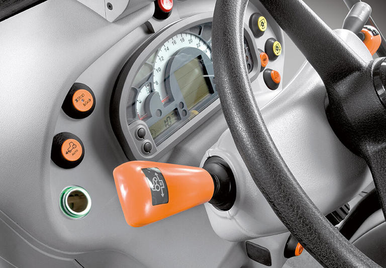The transmission systems of the new DEUTZ-FAHR specialist tractors have also been specially developed to meet the high demands of modern agricultural businesses. Efficiency, versatility and equipment flexibility were the most important criteria here. The three-stage PowerShift transmission with five gears is unique in this tractor class. It provides up to 45 forward and 45 reverse gears. For greater driver comfort, gear changes can be carried out at the push of a button on the gear shift lever without any need to depress the clutch. The Stop&Go system for convenient starting and stopping without using the clutch pedal comes as standard in all models featuring PowerShuttle. Choose the transmission system that provides a perfect fit for your work profile and comfort needs. For the 5DS, 5DV and 5DF models, a mechanical five-speed transmission is available with up to 30 forward and 15 reverse gears. The 5DF Ecoline models are fitted with this system as standard. A speed of 40 km/h ECO can be achieved with all models using any tyres. The ‘overspeed’ concept vastly reduces fuel consumption and noise levels during transport operations. Maximum efficiency and optimal driver comfort are the result.
