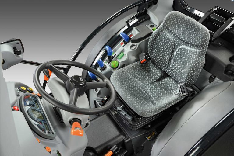 Cab comfort has not been a mere luxury for specialist tractors for some time. A more pleasant working environment means less severe environmental factors such as cold, heat, dust, crop protection agents and noise – and longer periods of concentration and performance for the driver. The four-post cab of the new specialist tractors meets the highest DEUTZ-FAHR standards. Maximum visibility in every direction, covering all areas relevant to work and safety, is ensured by the one-piece windscreen and all-round glazing. Outside, the cab is compact and slim. There are no sharp edges that could damage crops. Inside, a cutting-edge design and high-quality, light materials create a positive atmosphere. The interior is calm and peaceful. With numerous noise-absorbing elements and other technical details, the engineers at DEUTZ-FAHR have succeeded in minimising noise inside the cab. The air conditioning system is powerful, and the air distribution absolutely even. Seven adjustable ventilation nozzles keep the driver’s preferred temperature constant in all parts of the cab at all times. There are new seat options for the driver, including a choice of six versions with different suspension concepts, materials and settings.