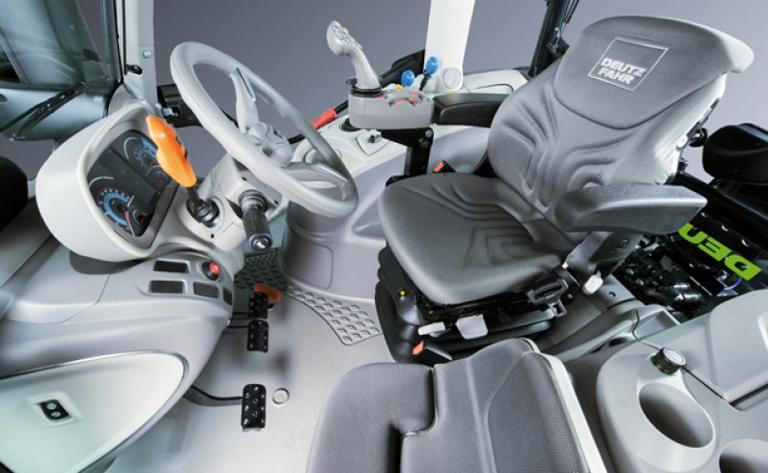 What do drivers need to give their all at work each day? First of all: peace and quiet. This is something the new 6 Series models offer. The cabin, mounted on Hydro silent blocks, reduces noise and vibrations by up to 40 %. For even more relaxed work, mechanical or pneumatic cab suspension can be fitted on request. Next, drivers need a pleasant working environment. No problem: you can choose between manually adjustable air conditioning or automatic climate control. Adjustable side windows are standard on all models, and an opening front windscreen is available on request. Then, of course, drivers need a perfect view of all working areas, whatever the conditions. This is a given, too. An optional 33,600-lumen LED lighting package turns night into day. For best visibility above the tractor during front loader operation, choose a model with a transparent sunroof – with FOPS. To improve rear visibility in wet conditions, the wiper position on the rear windscreen has been optimised. As you can see, DEUTZ-FAHR has given its utmost when it comes to comfort in the new 6 Series models so that drivers can also give their all.