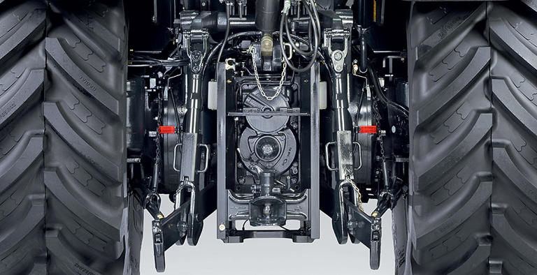 The attachment points of the new 6 Series are available with a wide range of feature options. For hydraulics, you can choose between mechanical and electro-hydraulic controls, up to five hydraulic valves in the rear and two in the front, and a hydraulic pump output of up to 170 L/min, with a rear lifting capacity of up to 10.000 kg. The models with the MaxiVision 2 cab have all the hydraulic inputs proportionally controlled, for broader control of implements. A separate oil tank ensures an ample oil supply for the TTV models. The main hydraulics are offered with a load sensing system or an open centre constant flow pump. The new front linkage system of the 6 Series TTV range is equipped with a position control function, providing greater control across a broader range of implements. The new front support with the new integrated front lift is designed to match the front suspension, this solution provides a compact layout for maximum steering capability, offering up to 5.480 kg lift with up to 2 dedicated front valves. The front mounting area also features an integrated ISOBUS terminal.