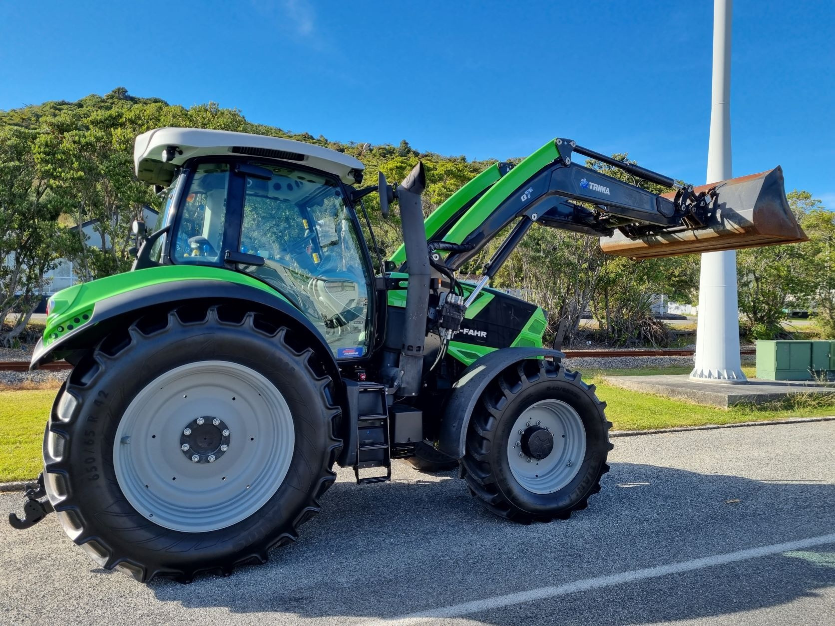 Well looked after and low hour 200+hp tractor complete with a Trima Q7 loader. Well spe'd with 3 transmission modes (Auto/Semi auto/manual) 5 ranges with 6 power shifts plus creeper box for low and slow ground work. Big 125lpm CCLS pump with load sensing and 4 rear remotes. Good big tyres all-round.